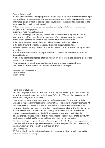 Felicity’s Fledglings recognises that a systematic approach to health and safety, based on an