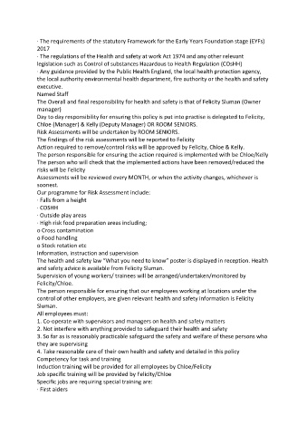 · The requirements of the statutory Framework for the Early Years Foundation stage (EYFs)