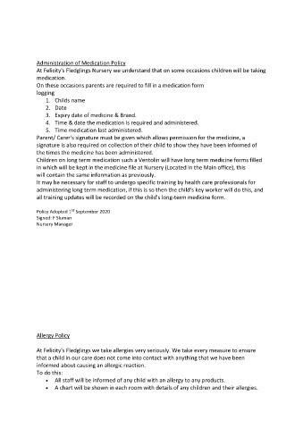 At Felicity's Fledglings Nursery we understand that on some occasions children will be taking