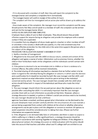 PROCEDURE FOR ALLEGATION AGAINST A MEMBER OF STAFF